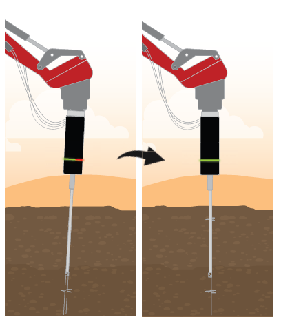 Using a band of LED lights, HALO guides operators to perfect plumb. When the lights glow solid green, you’re on target. If the drive shifts, a sequence of red and green indicators makes it simple to correct— keeping your piles straight, safe, and precise.